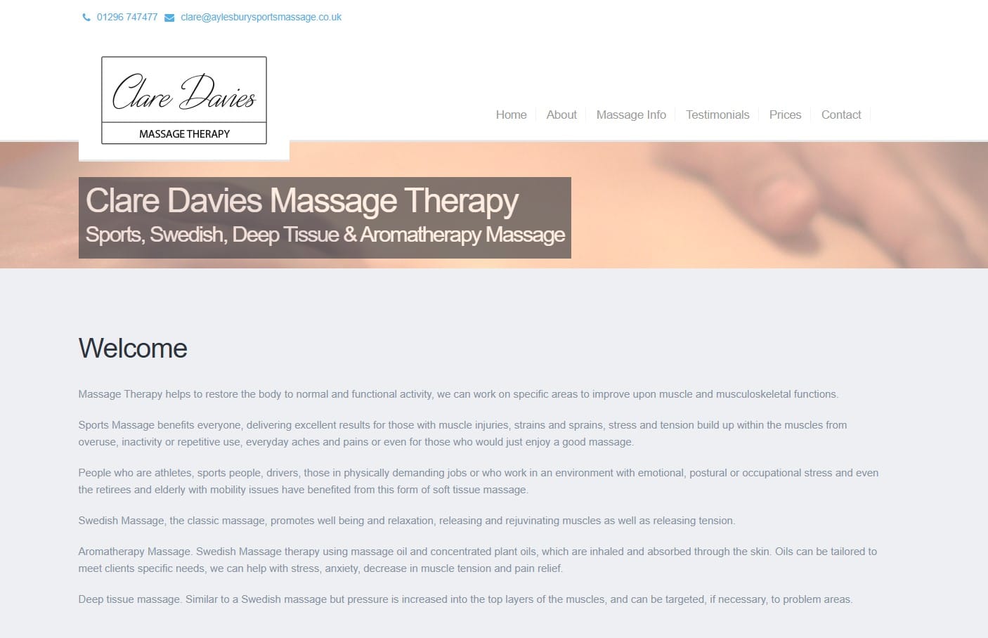 A 2016 website design, from scratch (flat HTML/CSS), with a minimalist logo and search engine optimised content. Visit the website at: https://www.aylesburysportsmassage.co.uk.